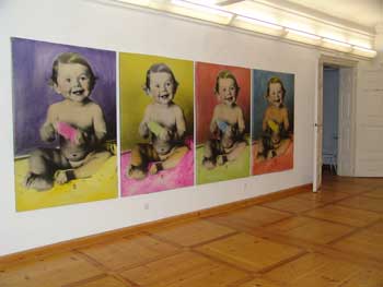 MAS "Inszeniertes Glück 1-4" ist eine großformatige Fotoinstallation in vier Bildern und verweist durch die Verfremdung in Farbklang und Dimension auf die Hinterhältigkeit des "Heile Welt"-Denkens und zeigt so die Verdrängungsmechanismen bis zur Flucht in die eigene Kindheit auf.